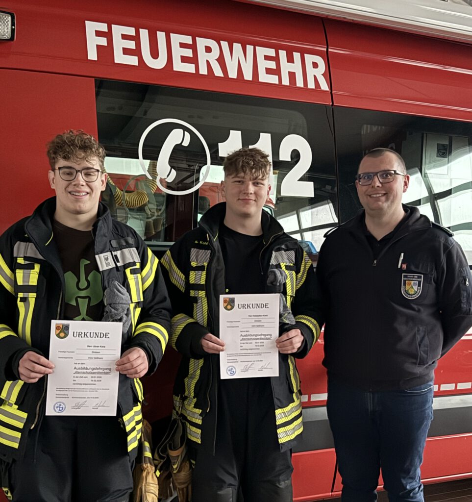 Mit Sebastian Kohl und Jöran Karp hat die Feuerwehr der VG Göllheim zwei neu ausgebildete Atemschutzgeräteträger. In den vergangenen drei Wochen haben die beiden Kameraden, der Feuerwehreinheit Dreisen, an der theoretischen wie praktischen Ausbildung des Atemschutzgeräteträger-Lehrgangs in Rockenhausen teilgenommen.