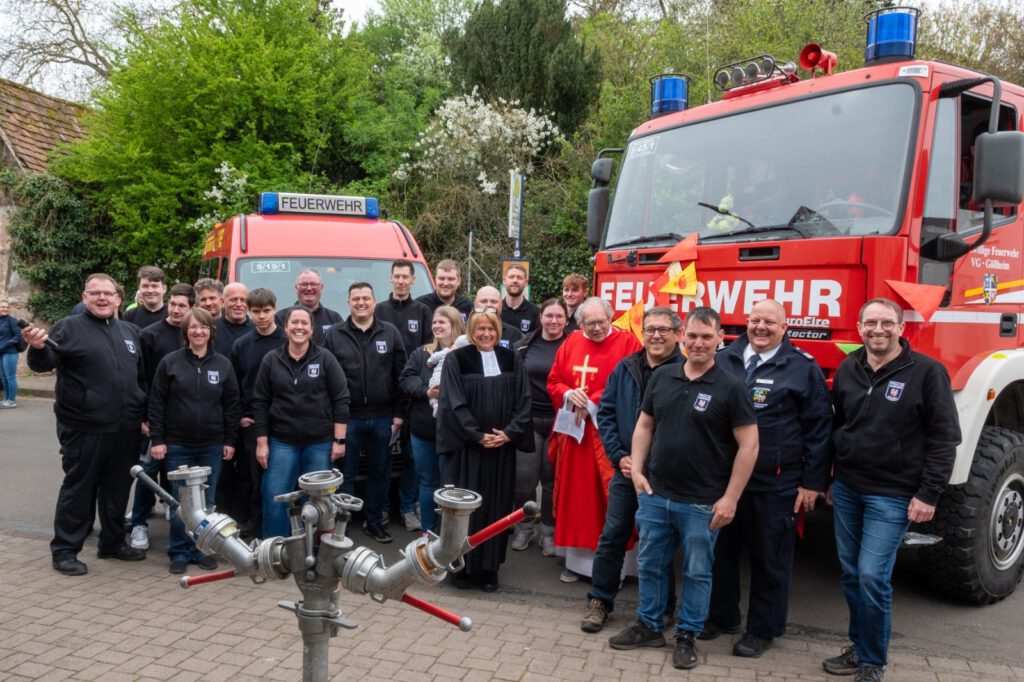 Begleitet von Grußworten durch die Wehrführung, um Christopher Molter und Thorsten Kaufhold, sowie der Ortsbürgermeisterin Kathrin Molter, wurden Mannschaft und Gerät sowohl durch die protestantische und katholische Kirche gesegnet.